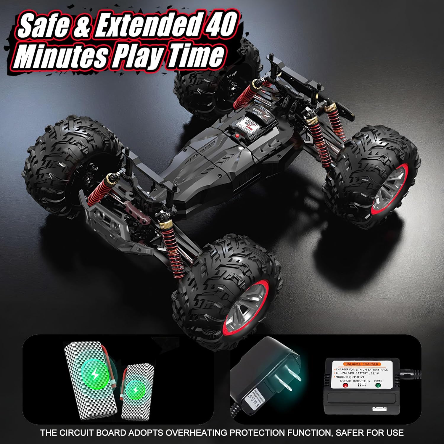 Double Batteries with Safety Charger! Enjoy 40+ minutes of non-stop runtime with two included Li-Po batteries and a balance charger. This remote control car delivers extended play for adventures big and small, making it the ultimate rc car with two batteries and a perfect birthday gifts.