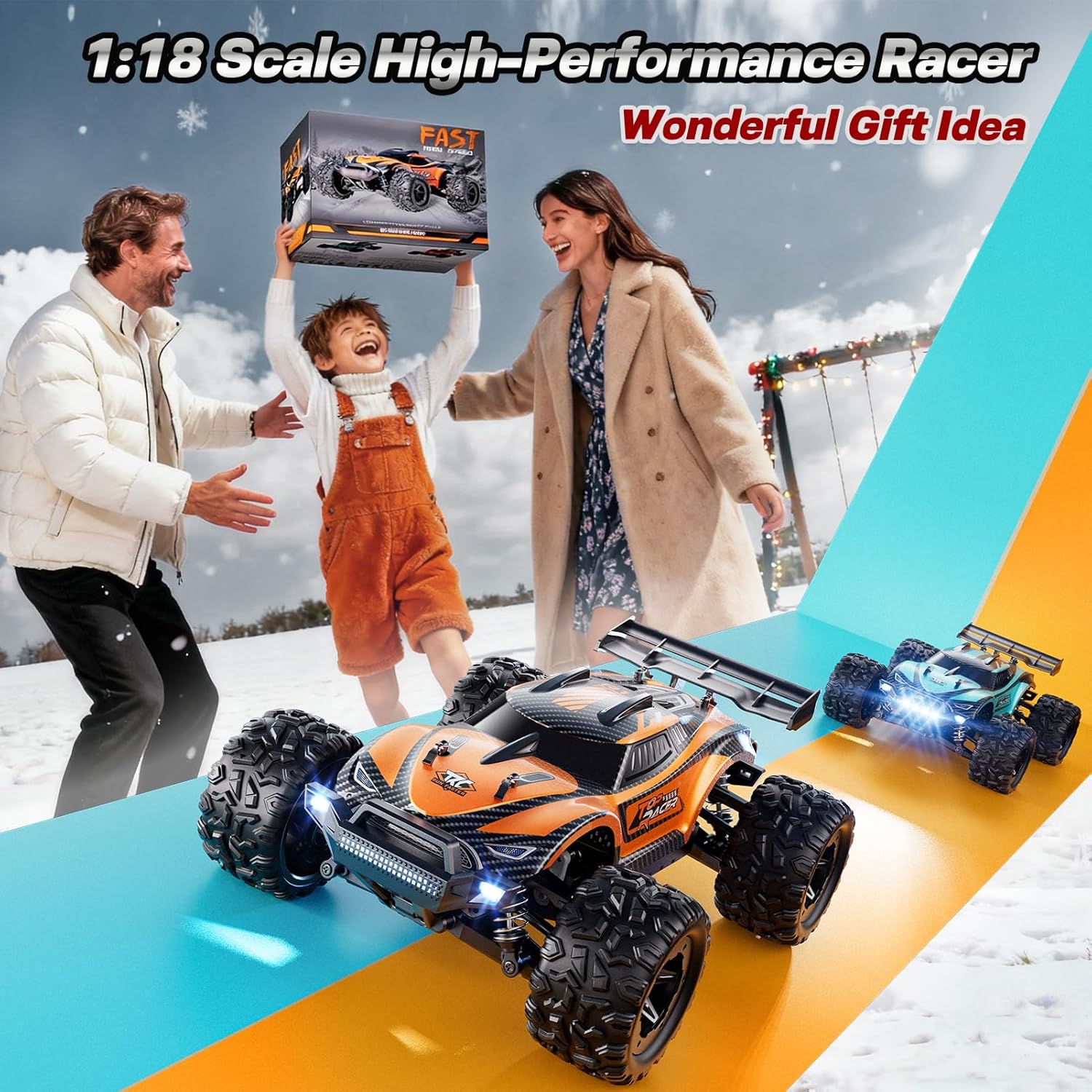 38+ KM/H Fast RC Cars:This RC car offers exhilarating driving at 38+ kph, with two 7.4V/1500mAh batteries (one spare) for non-stop fun. It also features automatic power-off protection to prevent overcharging and extend battery life.