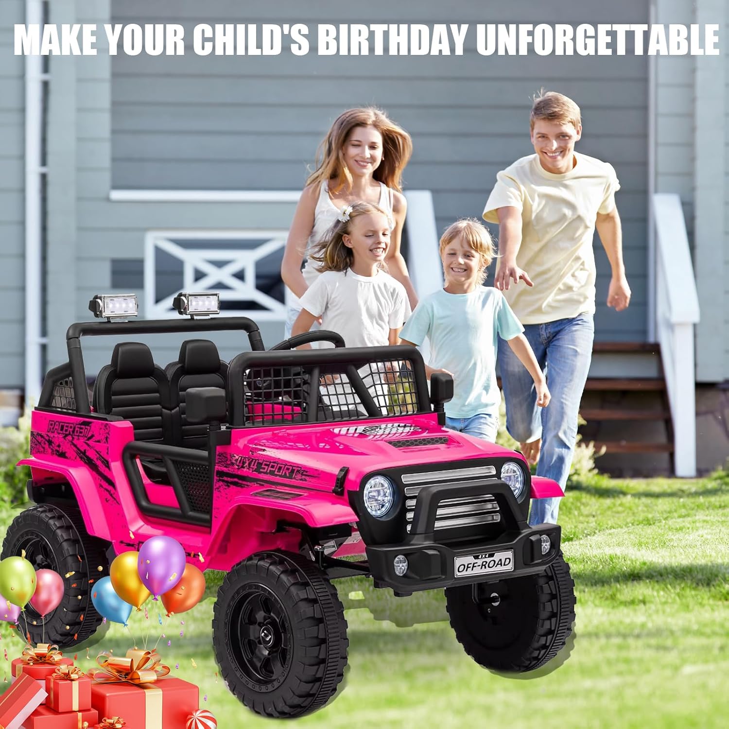 We uses premium materials and offers safety features like parental remote control, soft start, spring suspension, seat belts, and all-terrain wheels. Extra features like Bluetooth music add a realistic, fun driving experience.