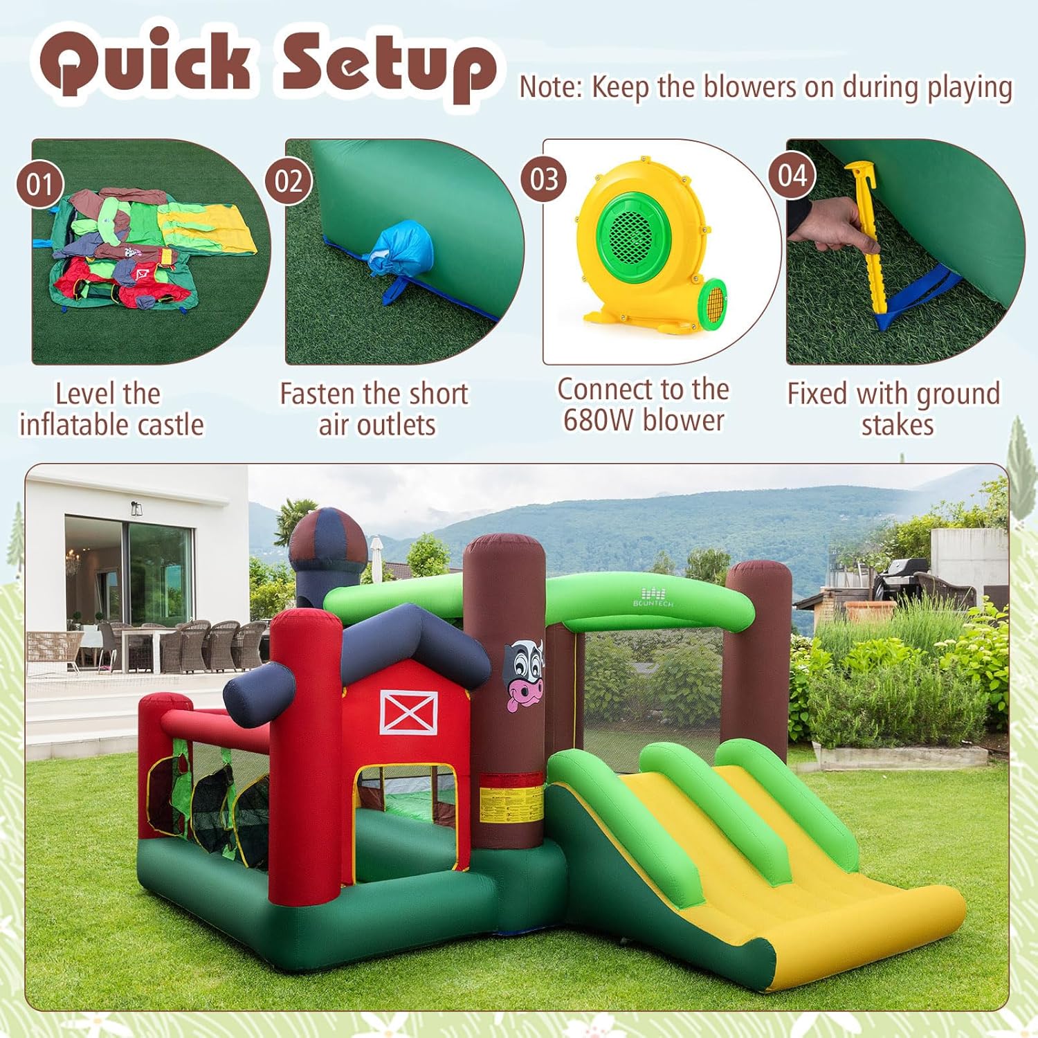BOUNTECH Inflatable Bounce House with Ball Pit, Farm Bouncy House with Dual Slides for Racing, Blower, Big Jump Castle Bounce House for Toddler Kids 3-12 Indoor Outdoor Backyard Birthday Party Gifts