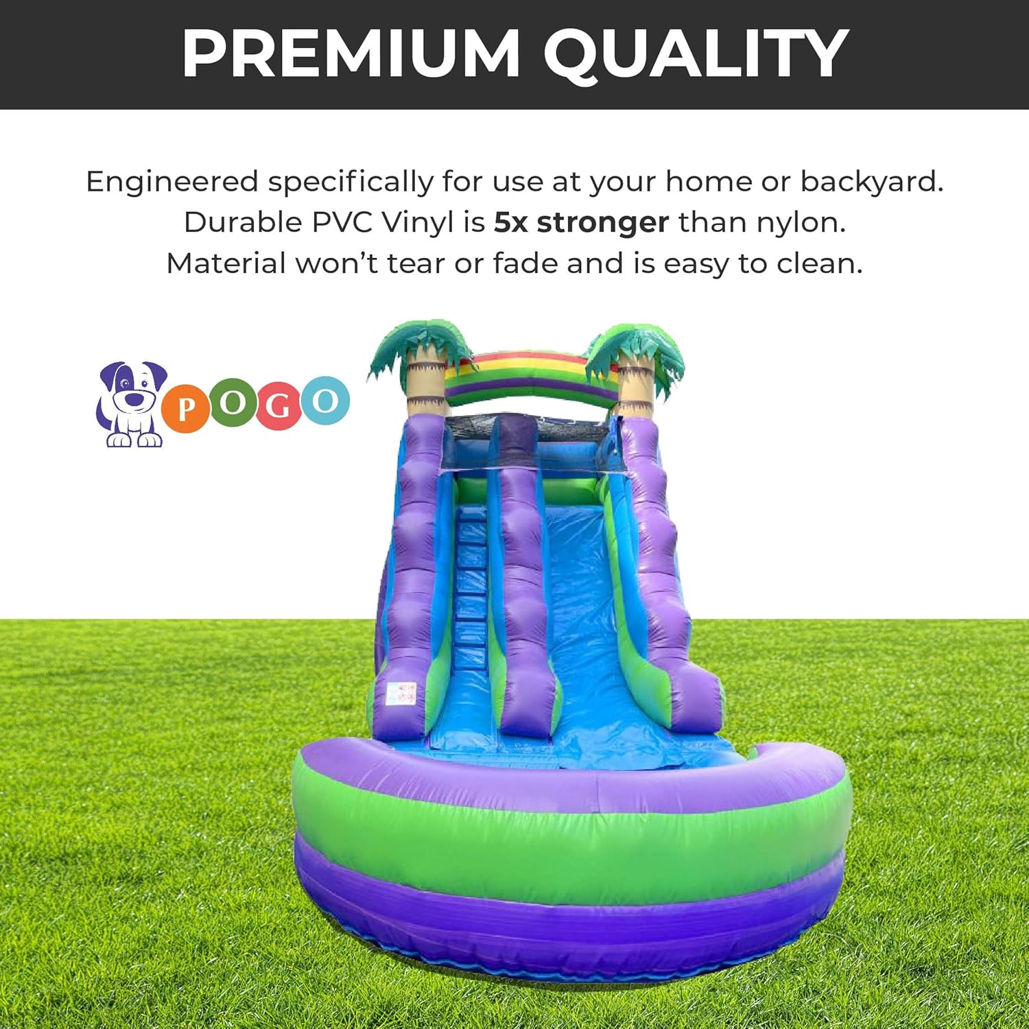 Crossover Inflatable Water Slide for Kids with Removable Splash Pool, 25.5 x 9 x 15 Foot Tropical Purple Backyard Party Waterslide, Includes 1HP Blower, Stakes, Storage Bag, Patches – 15 Feet Tall
