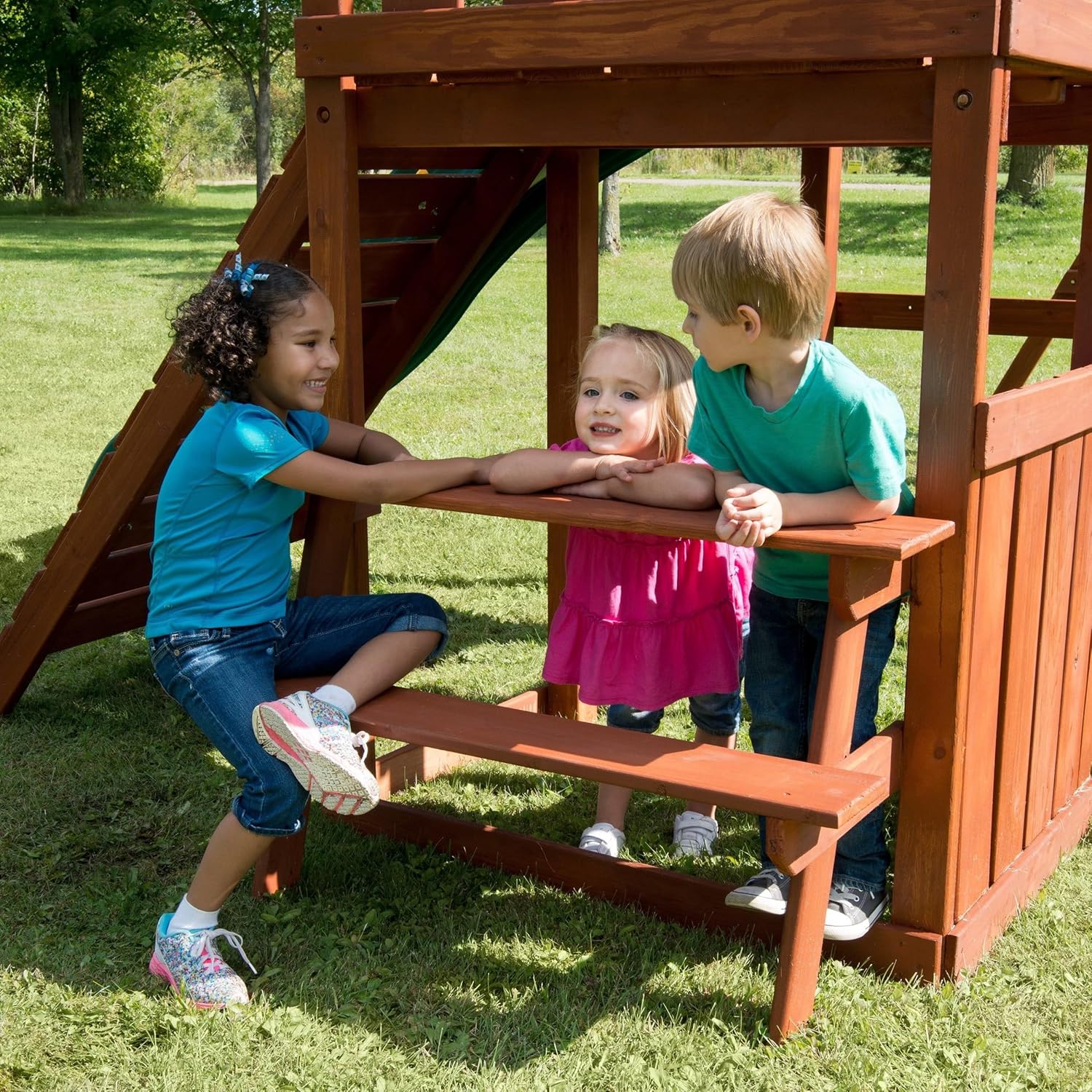 Includes all pre-cut, premium stained wood, hardware, and instructions needed to assemble play set